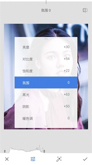 打开Snapseed导入图片,选择【工具】-【调整图片】。