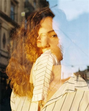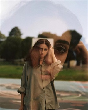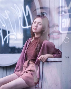 利用双重曝光,制作出如透明玻璃反射在人身上的效果,增加画面的层次感,让画面产生梦幻迷离的神秘感。