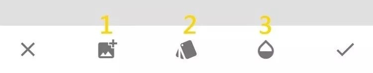 3号工具是不透明度,往左划增加叠加图的透明度,往右划增加背景图的透明图。