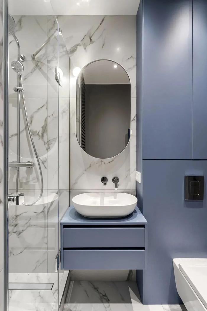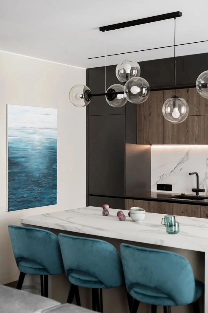 木色的融入更加温馨自然,灰白的色调里,湖蓝色成为点缀将不同空间串联起来,一股清新自然又轻复古的味道油然而生。