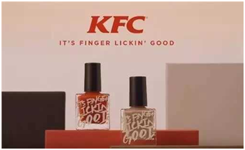 kfc的炸鸡味指甲油:专业做鸡30年的肯德基,为庆祝其入驻香港30周年,曾在2016年推出两款特别的指甲油,为什么特别呢?因为一款是香辣脆皮鸡味,另一款是吮指原味鸡味,而且都是可食用的!!!(五分钟之内哦,不然会变干的)
