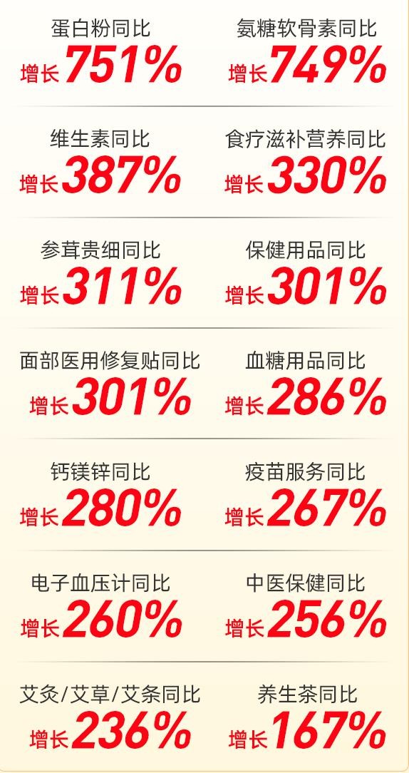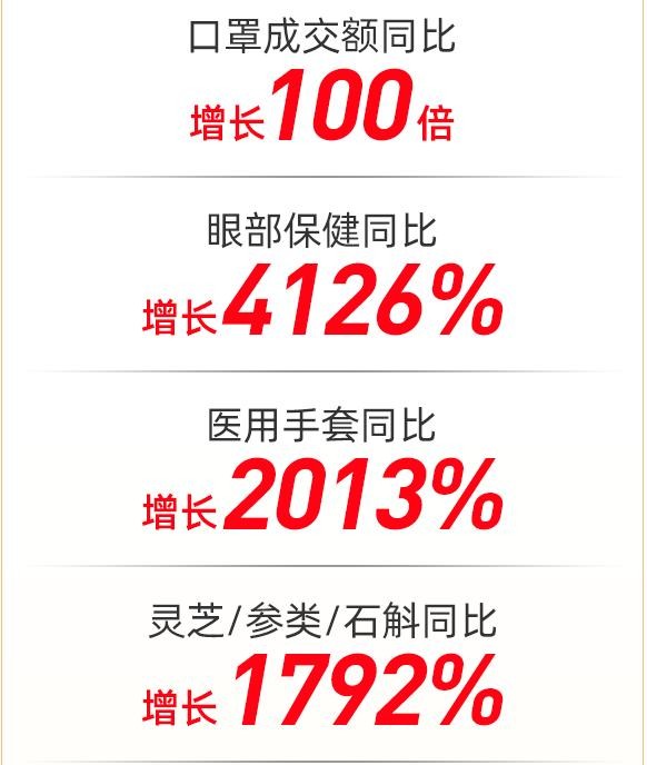 疫情背景下最大的购物季,中国人的健康消费需求在本次618上得到全面释放。阿里健康数据显示,6月18日凌晨第1小时,天猫医药健康板块口罩成交额同比增长100倍。开售1小时,天猫中医保健类目同比也录得了256%的增长,艾灸、膏药贴、枸杞原浆等中医药相关的保健制品也成为消费者投资健康的首选。