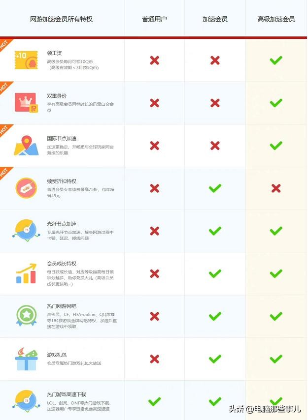 据悉,目前迅雷网游加速器会员是15元/月,高级加速器会员是30元/月。不同等级会员,拥有不同的游戏特权服务。如下图: