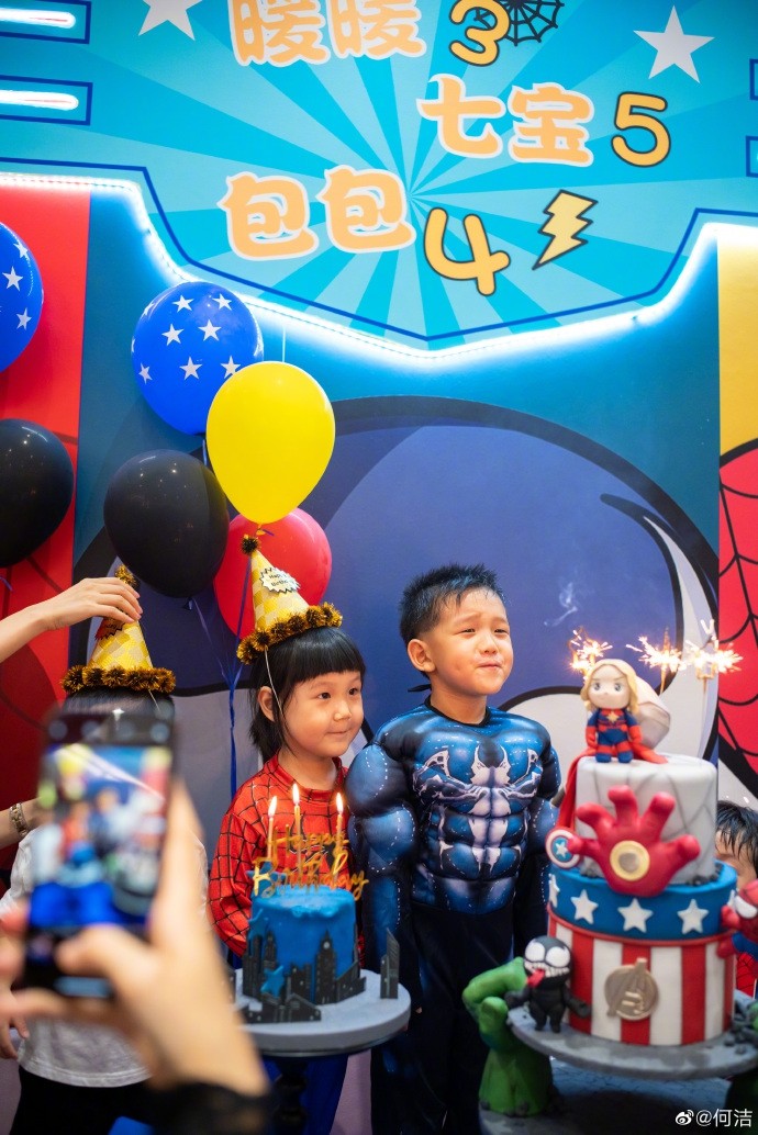 7月4日凌晨,何洁在微博晒出为儿子七宝庆祝五岁生日的派对现场照,写道:“我的小男子汉长大啦~当有一天你要去保护世界,我依旧留在原地保护你。愿你和妹妹永远这样快乐、健康,足矣。儿子五岁生日快乐。”