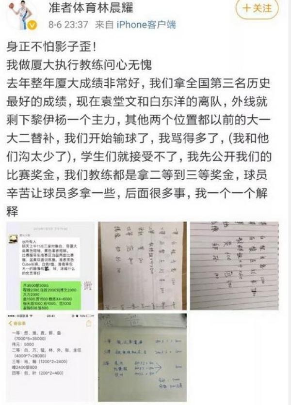 目前林晨耀已经做出了回应,他表示自己身正不怕影子歪,做厦大执行教练问心无愧。对于很多事情,他会在之后陆续解释。