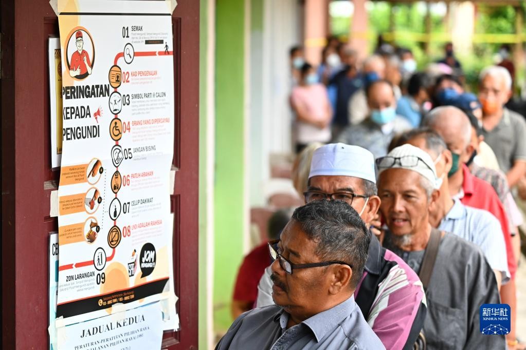 11月19日,选民在马来西亚彭亨州贝拉的一处投票站排队投票。 当日,马来西亚举行大选投票。 新华社记者 朱炜 摄
