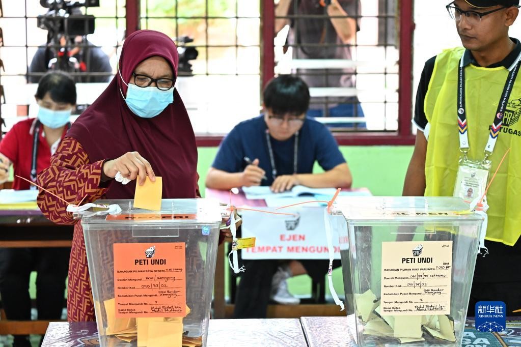 11月19日,选民在马来西亚彭亨州贝拉的一处投票站投票。 当日,马来西亚举行大选投票。 新华社记者 朱炜 摄