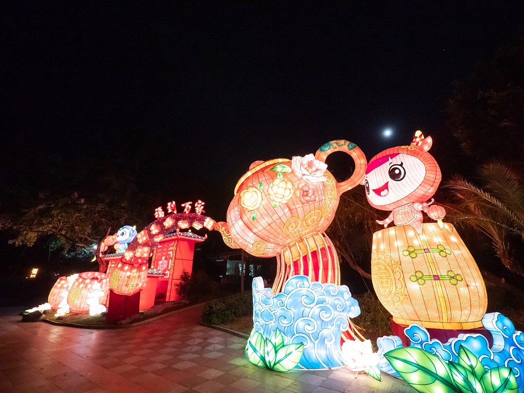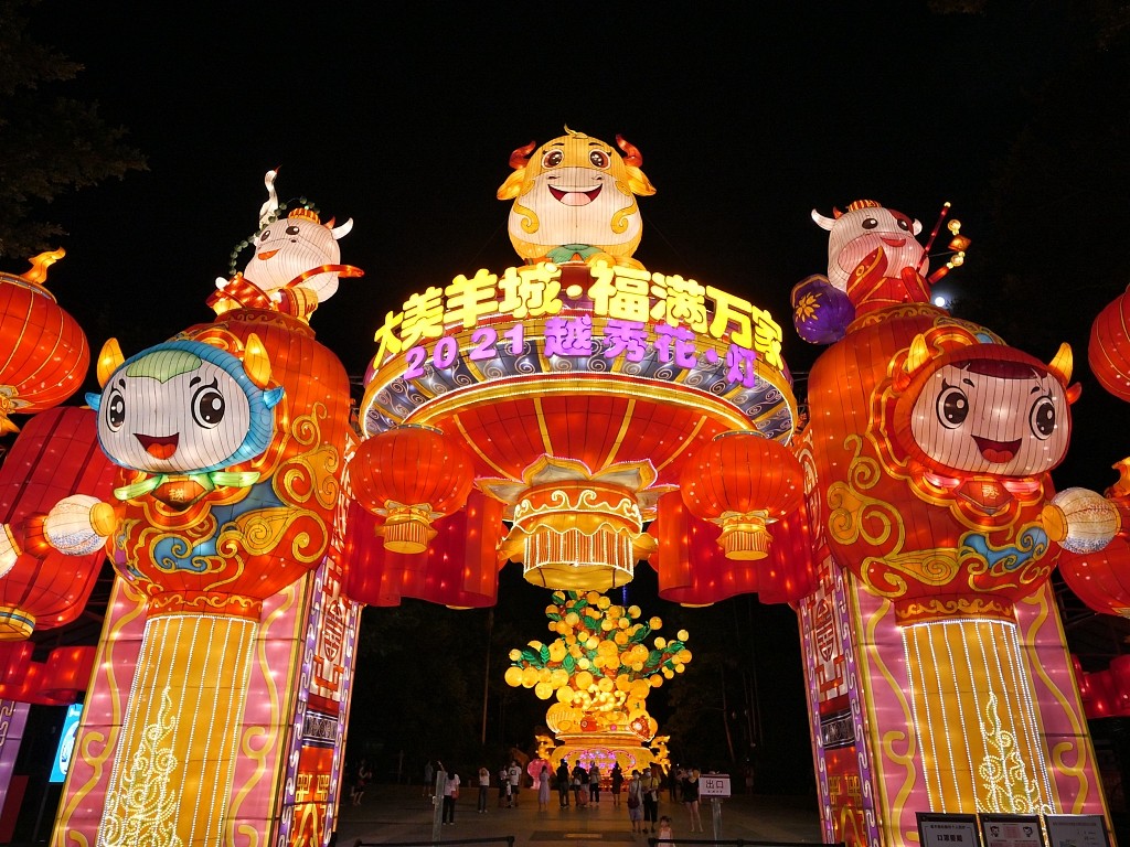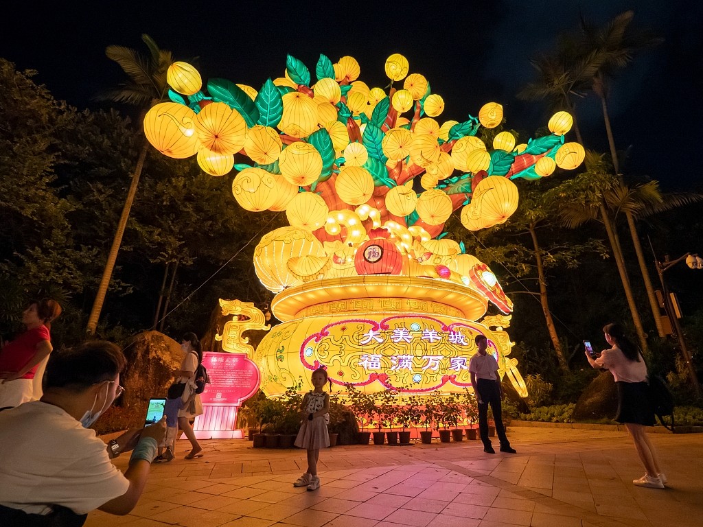 广州越秀公园设置多组花灯 市民赏灯过中秋