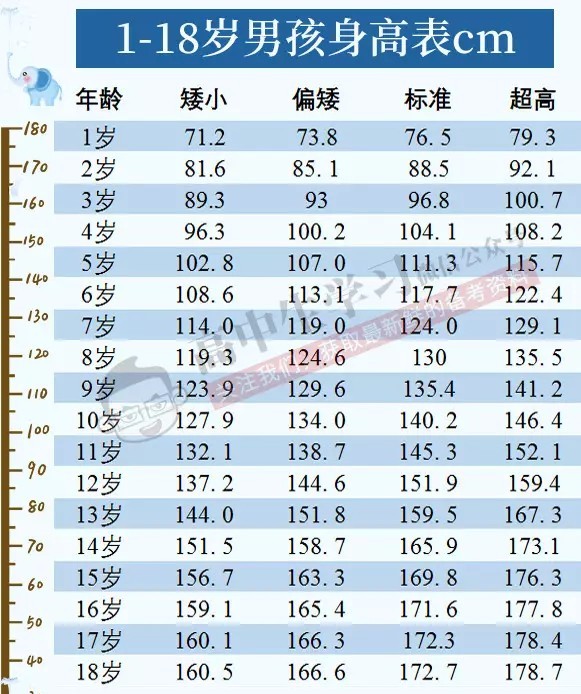 男孩身高表
