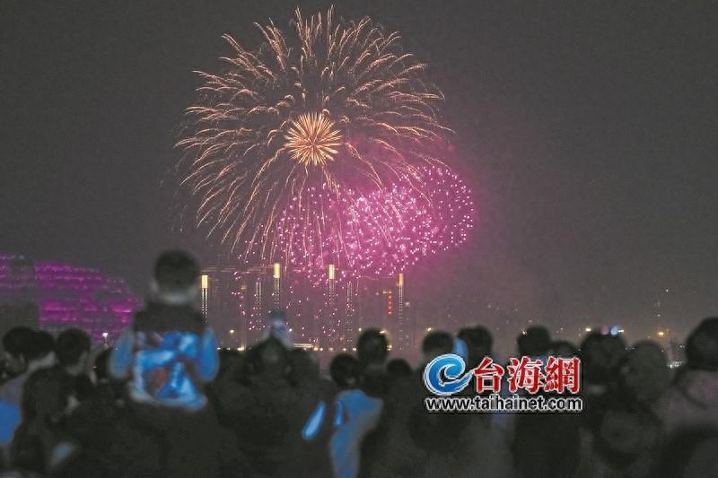 厦门市民齐聚演武大桥欣赏浪漫烟花秀,一起迎接2024