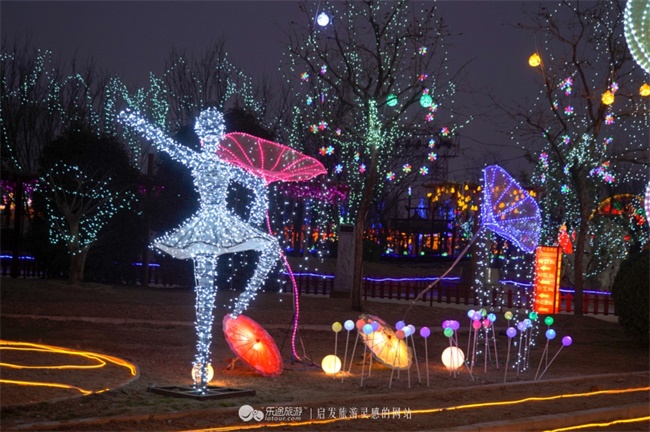 《雅韵翩然》以现代灯源LED打造出唯美的意境,芭蕾少女造型生动,清新高雅,纯洁自然,运用多种元素的渲染,带给人绝美的艺术享受。灯组和搭配星星挂件装扮树枝高处,夜晚来临之时,彩灯亮起,放眼望去,芭蕾少女在繁星深处翩翩起舞,灵动绝美。