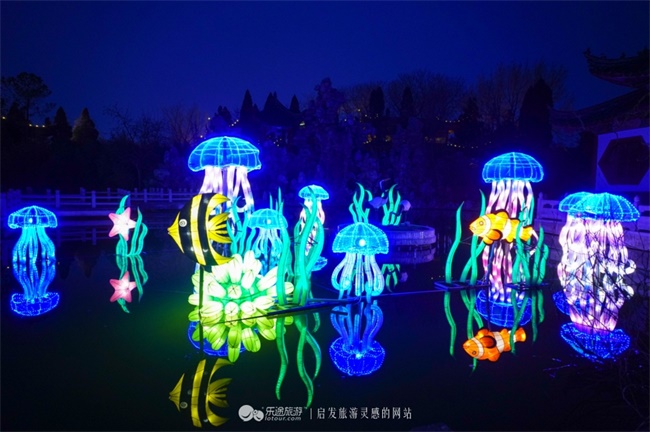 《晶莹剔透》灵动剔透的水母随着灯光的变化变得五彩纷呈,在岸上可以看到可爱的鱼儿在水草中穿梭。