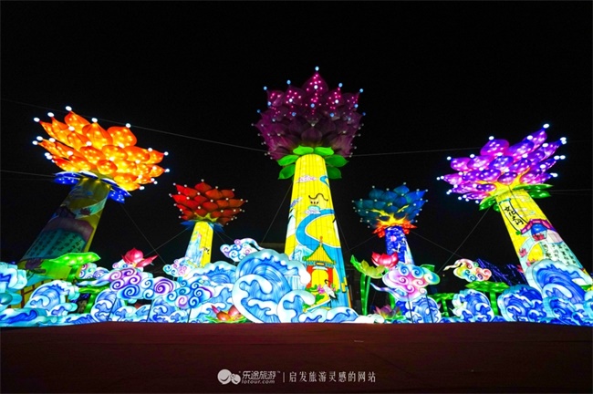 《大美开封》整个景点犹如美轮美奂的“天上宫阙”,盛开的花结合传统祥云、现代浪花等元素,构成了一幅色彩艳丽、光彩夺目的画面,让人久久不能忘怀。呈现出光耀夜空、如梦如幻、并融入诸多创新元素和文化内涵的“光影世界”。