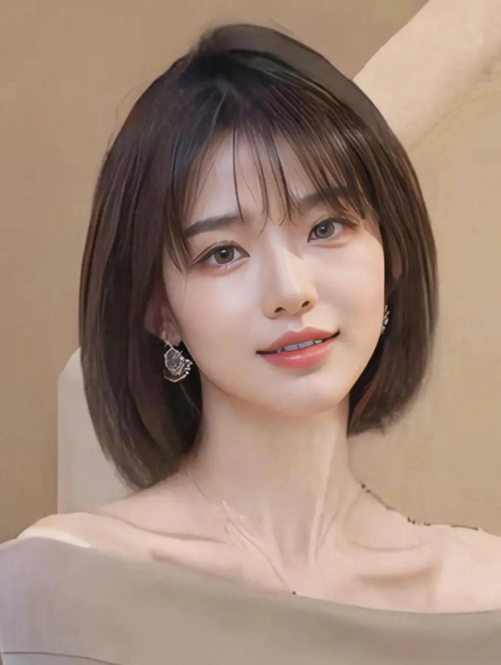 第三款:高层次锁骨发搭配八字刘海!空气刘海减龄、甜美!而八字刘海简约,大气,同时又比较修饰脸型和颧骨。高层次则解决了发量太多和笨重的感觉。在家也很好打理,自然吹干,用夹板夹出一点内扣的弧度即可!