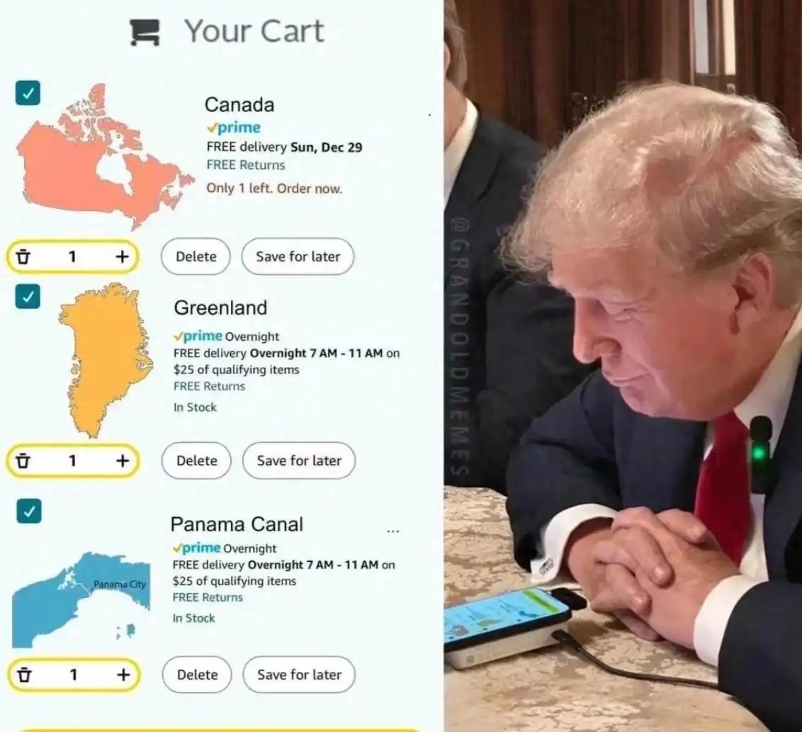 特朗普2024年圣诞节的“购物清单”中,原本是加拿大、格陵兰岛和巴拿马运河三项,后来加上了加沙地带,接着又加上了乌克兰的稀土矿产。