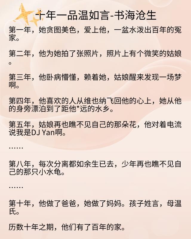 《十年一品温如言》讲述的是言希和温衡的年少相守相知相爱的故事。言希虽然是言家唯一的孙子,但他的生活里并不完全幸福,他年少时曾有过非人遭遇,更因此有癔症。
