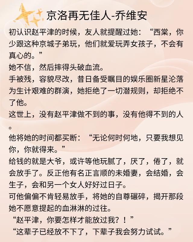 《京洛再无佳人》讲述的是偏执腹黑的纨绔子弟赵平津与娱乐圈小艺人黄西棠之间因门第之差无法圆满的故事。