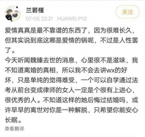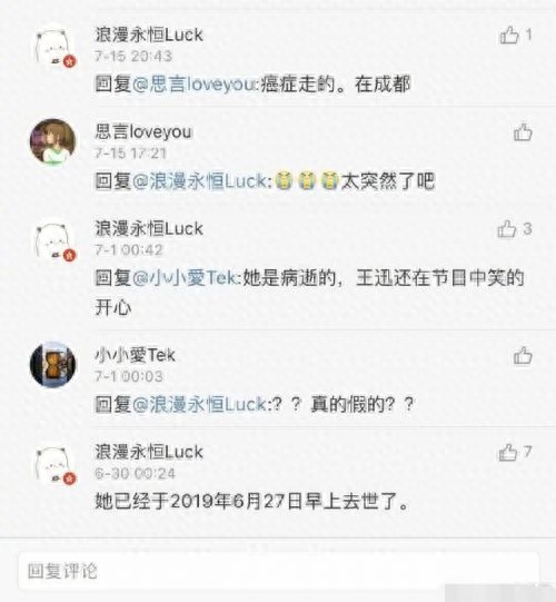 王迅再度出轨的消息被报道之后,网友到王迅前妻魏臻的微博去看,结果发现有网友在今年7月就已经留言提及魏臻去世的消息。