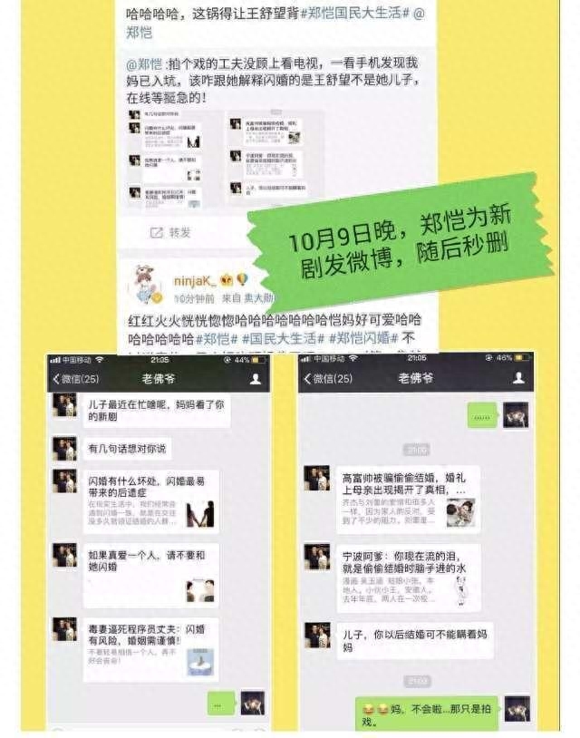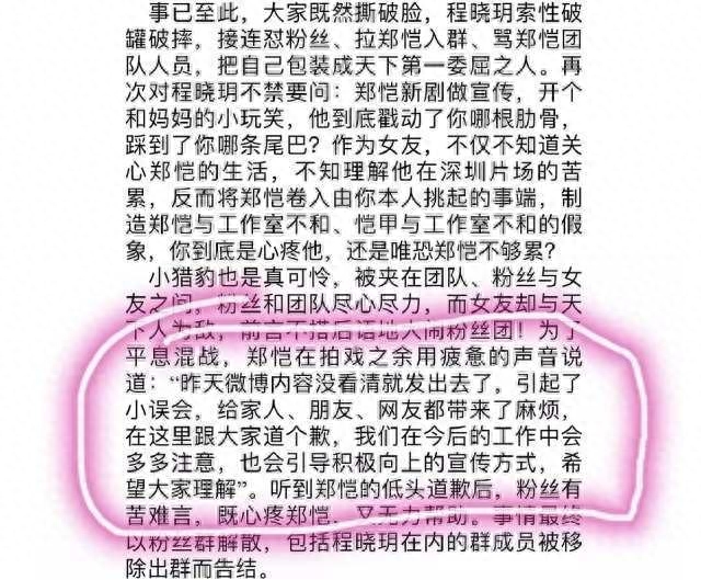 从截图看到闪婚,偷偷结婚等字样,估计就是这个惹怒了程晓玥,于是程晓玥就指出郑恺和他妈妈的对话是伪造的P图的,而且还很不理智地加入了郑恺的粉丝团,在粉丝团内大吐苦水,最后还把郑恺本人也拉近群里面了!这时候,郑恺只能向大家公开道歉。