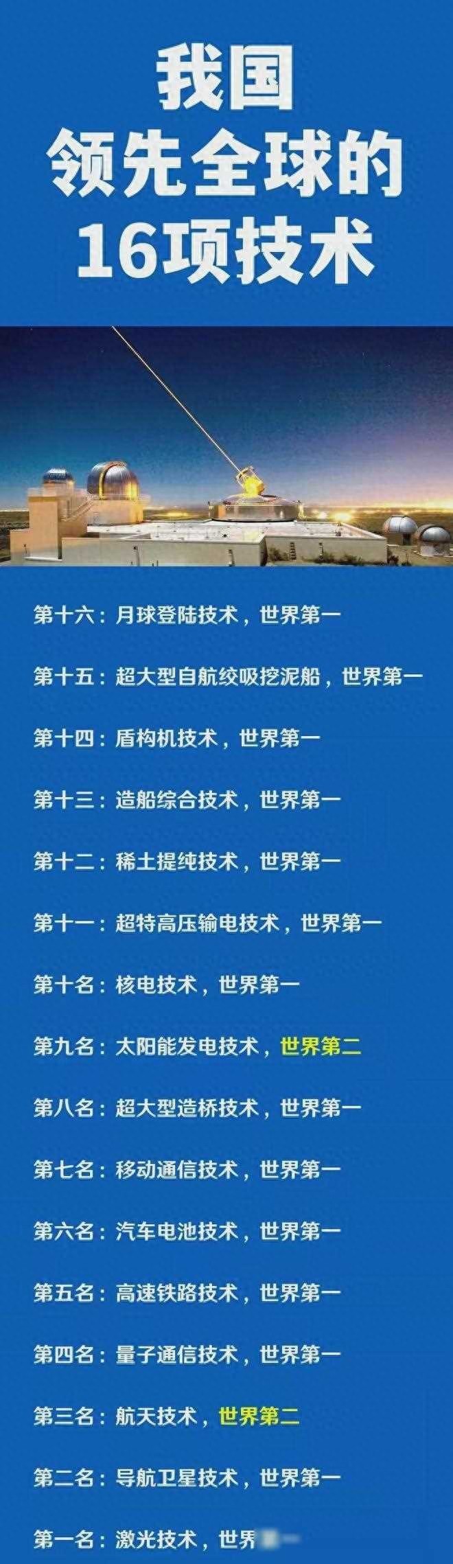 总之啊,咱们国家的这16项领先技术,可是咱们国家实力的有力证明!咱们得好好珍惜这些成果、继续加强科技创新和人才培养啊!相信在不久的将来啊,咱们国家一定会在全球科技舞台上绽放出更加璀璨的光芒、为世界的和平与发展贡献更多的中国力量!