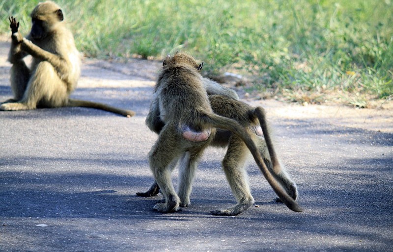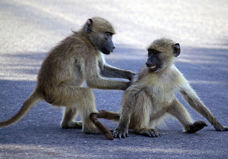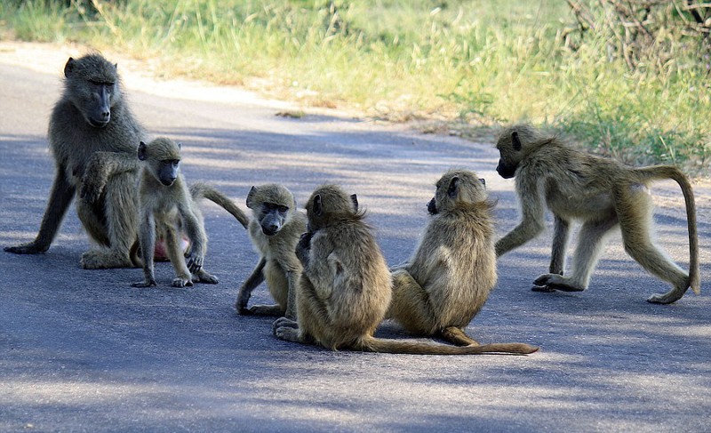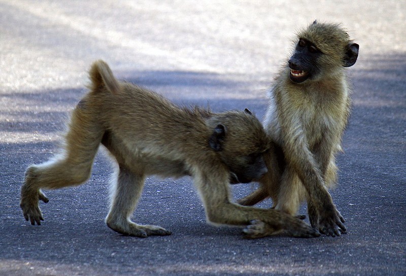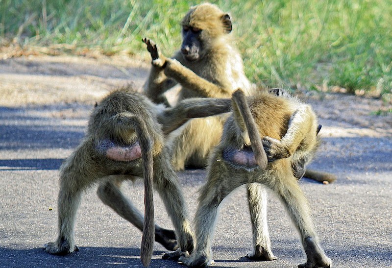 【环球网报道 记者 郭思佚】据英国《每日邮报》5月22日报道,近日,一名游客在南非克留格尔国家公园度假时拍摄到了一组狒狒在路边调皮玩耍的照片,滑稽的景象令人捧腹。