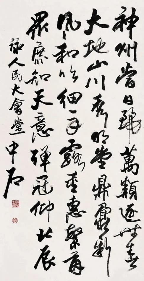 第五名:张旭光 张旭光先生是当代书法界二王一路的杰出代表之一,也是中书协草书领域的领导之一,他的作品以其独特的气魄和个性化的艺术表达方式而著称。他的字体刚劲有力,线条流畅,富有动感和张力。张旭光先生虽学二王,但又有很强的个性,作品不拘一格,给人以耳目一新的感觉,总能引发人们对书法的思考和探索。