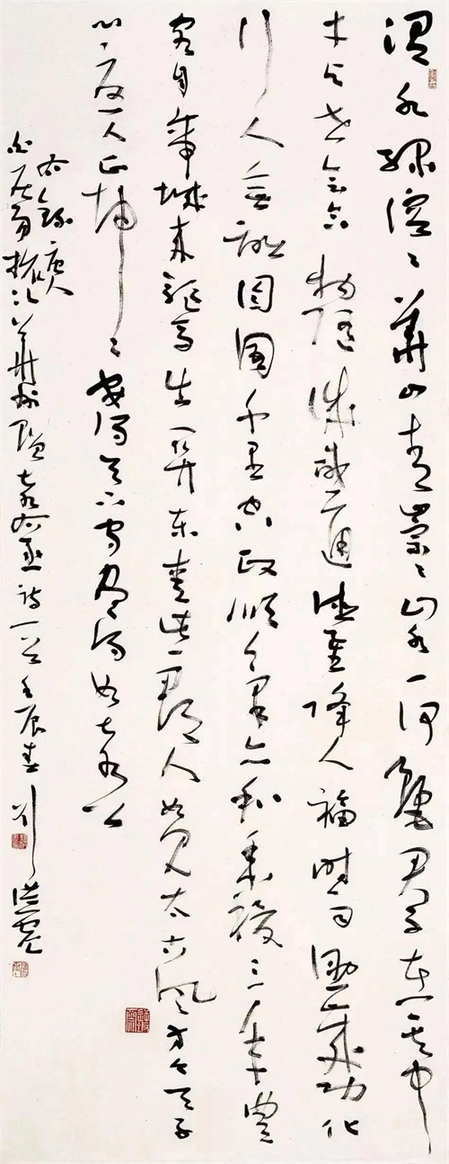 第七名:刘洪彪 刘洪彪先生是当代书法界备受瞩目的新锐草书艺术家之一,他的作品以其独特的艺术风格和创新的创作方式而闻名。刘洪彪先生的字体融诸家之长,气势磅礴,同时又有现代化的章法布局,给人以美的享受和思考。他的作品充满了艺术感染力和个人情感,给观众带来不同的审美享受。