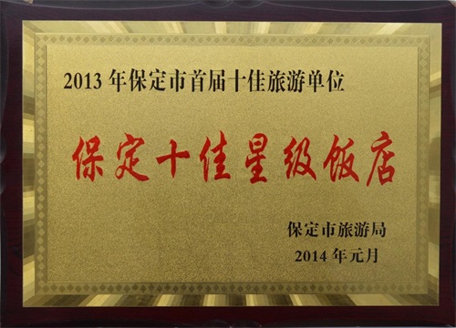 保定国际俱乐部酒店分别荣获2013年度、2016年度、2017年度的"保定十佳星级饭店"荣誉称号。评选期间,星级调查员对国际俱乐部酒店进行明察暗访,按照国家星级评选标准,对酒店的预定服务、前厅客房、餐饮等进行了分区感受,并了解宾客意见反馈,酒店个性化、人性化服务得到了评选小组和广大顾客的高度赞誉。