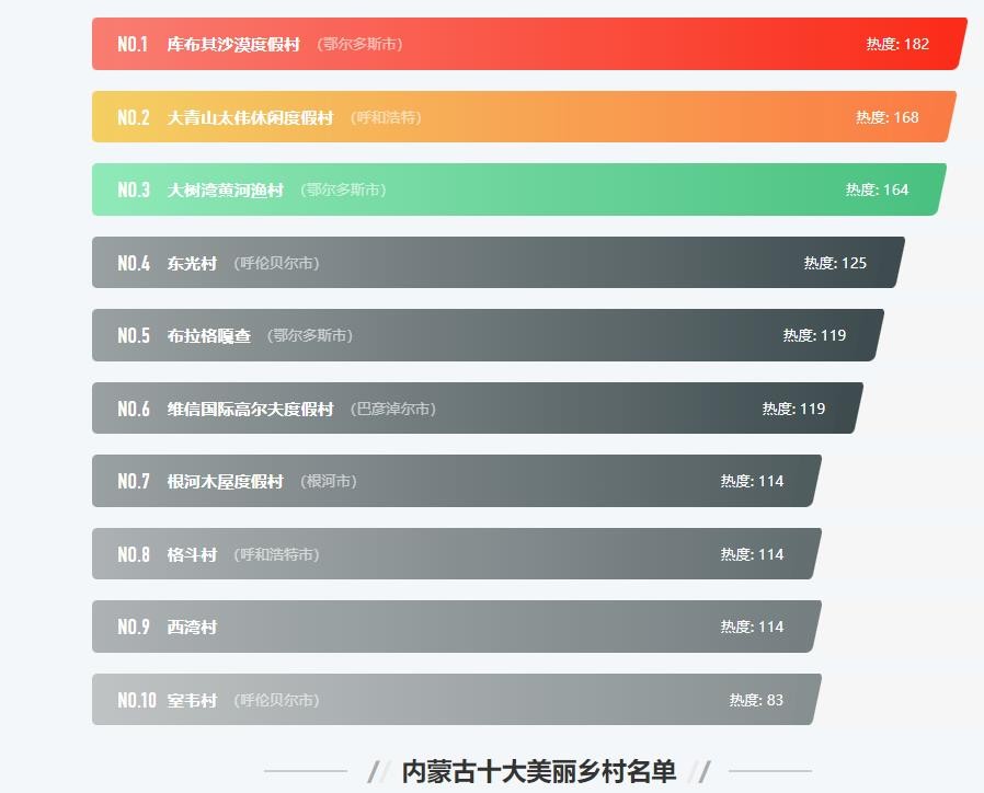 可以看出,无论是壮美的自然景观,还是独特的民族风情,内蒙古的乡村都有着无限的吸引力。这十大村庄可谓美不胜收,保证带给你全新的震撼体验。不管你热衷草原狂飙,还是痴迷于探秘古村,总有一处会打动你的心。快来内蒙古这片世外桃源,找个清幽处,慢生活!