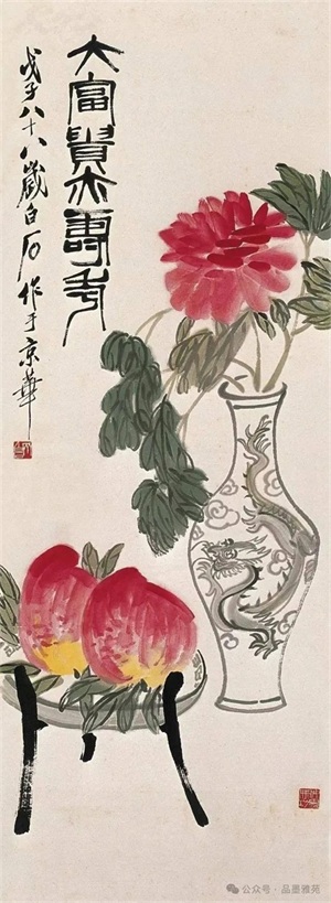 齐白石生命的最后两年,体力、精力日见衰退,有时把笔作画连自己的名字“白石”都忘记怎么写了,但他仍然不断挥毫,尤以牡丹为多,仿佛在他的艺术里始终葆有企求富贵平安的善良愿望。