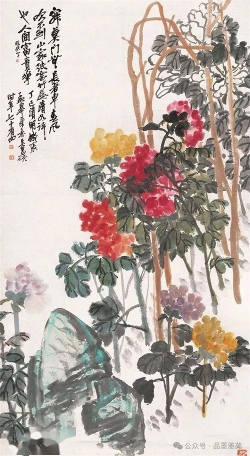 吴昌硕最擅长写意花卉,他以书法入画,把书法、篆刻的行笔、运刀、章法融入绘画,形成富有金石味的独特画风。