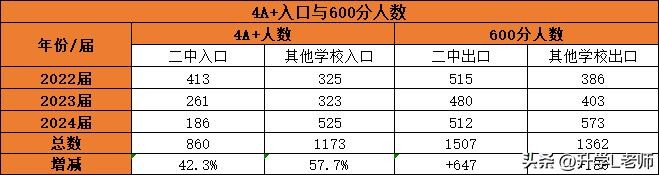 自2022年南宁二中培养600分以上人数1507人,相对入口(4A+)人数增加647人,同城其他学校出口1362人,相对入口(4A+)人数增加189人。