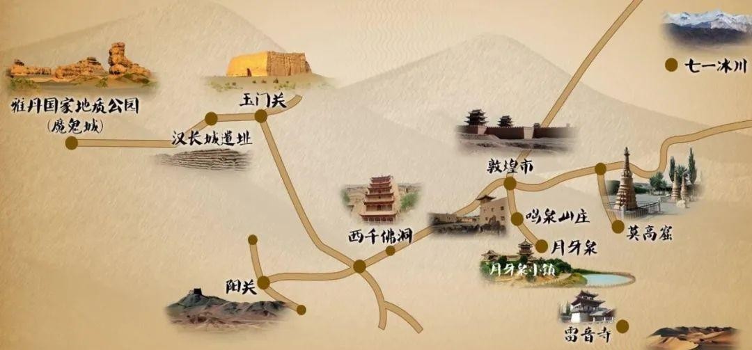 汉朝先后设酒泉郡、张掖郡、敦煌郡、武威郡,合称河西四郡。敦煌城是河西走廊中最重要的城市,军队长期保持两三万骑,是汉军出征西域的最后一站,也是必经之地。唐代,阳关大道仍是丝路上的必经之路。在这里,有渥洼池和西土沟两处水源,以及火烧沟文化等绿洲文明的痕迹。