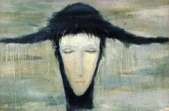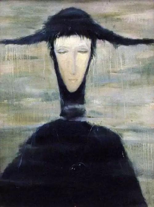 1. 女人的形象——身形瘦长,尤其脖子;脸形尖锐模糊;眼神迷离,似睁不睁;表情怪异,略带忧郁。
