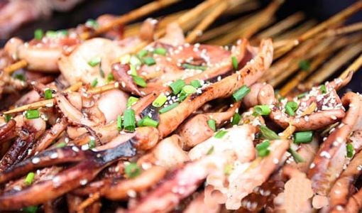 大连当地产的鱿鱼肉质鲜嫩Q弹,在各大美食街、路边烧烤摊随处可见烤鱿鱼的身影。其中以铁板烤鱿鱼为代表,口味咸鲜,令人念念不忘。