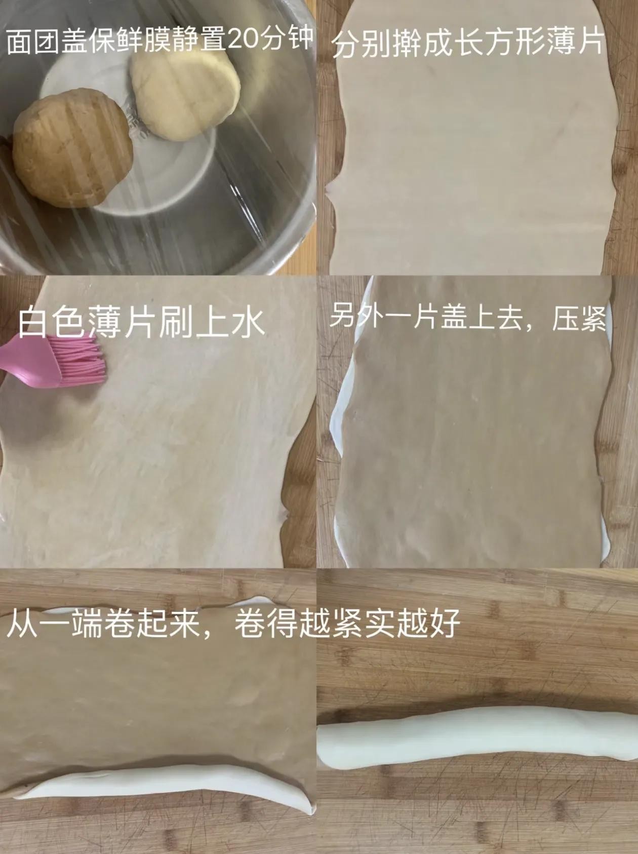 用面粉+糖/红糖揉面,卷成“瑞士卷”冷冻切片油炸,甜咸双拼超酥脆!