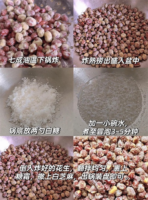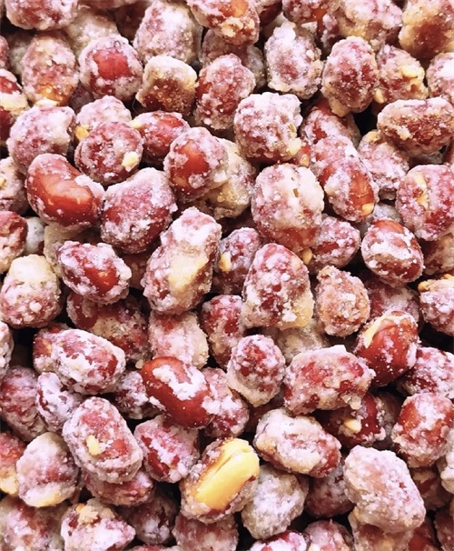花生烤熟后裹糖浆,撒玉米淀粉防粘,比外面买的更酥脆!