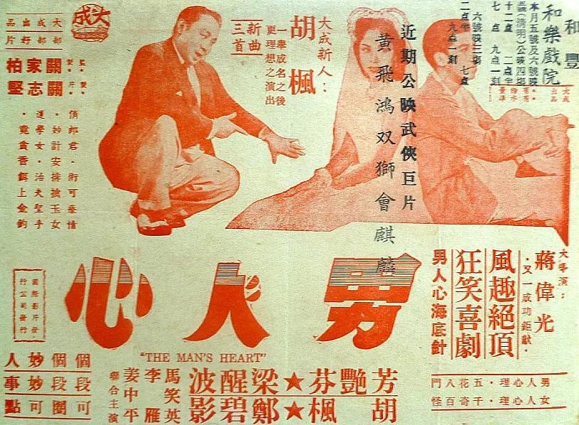 刚出道的胡枫便成为了大成电影公司的力捧新人,与他搭档的基本上都是当时的巨星,除了“花旦王”方艳芬之外,与他合作的包括任剑辉、白雪仙、郑碧影、新马师曾、梁醒波等等当时都可以称得上为超级巨星,而当时只有十几岁的少年李小龙也曾与胡枫多次过合作。