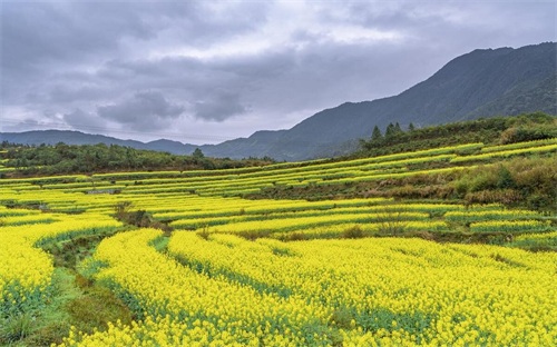 被誉为“中国最美乡村”的婺源,在春天更是美得不可方物。粉红的桃花、洁白的梨花点缀在层层金黄的梯田油菜花海中,与白墙黛瓦的民居相辉映,宛如一幅幅唯美的天然画卷。这里的油菜花盛开一般在每年的3月中旬至4月上旬,是赏花的最佳时节。