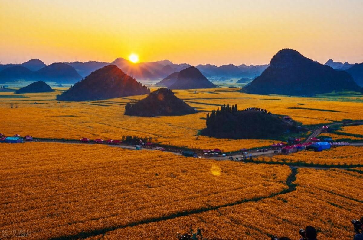 1、罗平油菜花海:金黄浪潮中的浪漫曲