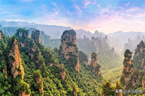 张家界以其奇特的石柱地貌、雄伟的山峰和云雾缭绕的景象而著名。位于湖南省张家界市。