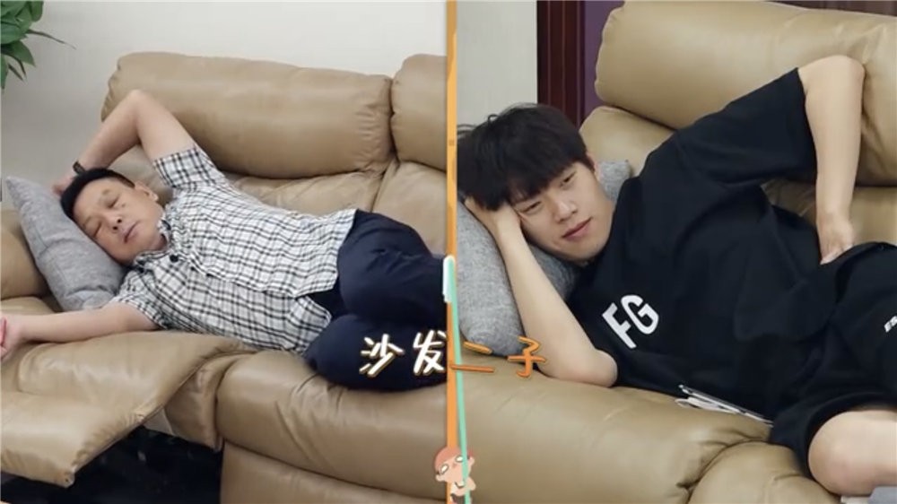 父子二人还一度被网友冠名为沙发二子