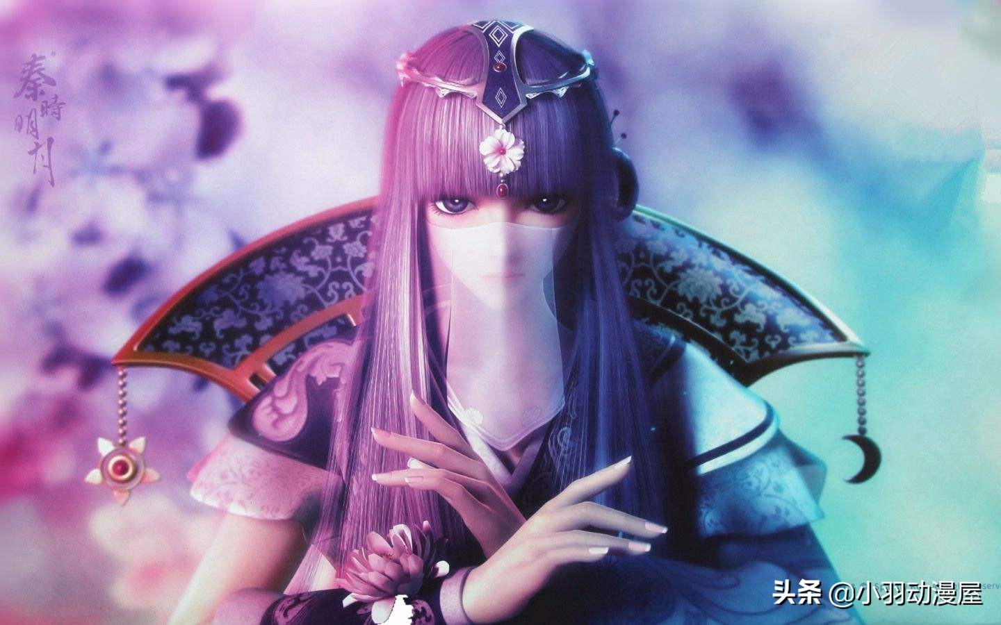 总是以面纱遮面,传说她美若天仙,但这世上还没有人见过她面纱之下的真正面目。在动画页游特别篇《秦时明月之罗生堂下》中作为女主角。