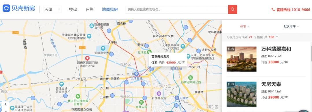 天津房价:找了下海河边的住宅房价,4.2万一平,市内六区也有两三万一平的房子。