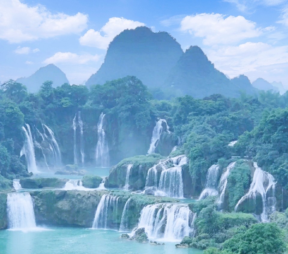 这是一条跨两国的瀑布,横跨中越边境,也是《花千骨》的取景地。三级瀑布层层跌落,从高处看就像一幅气势磅礴的山水画卷,绝对值得去一趟。