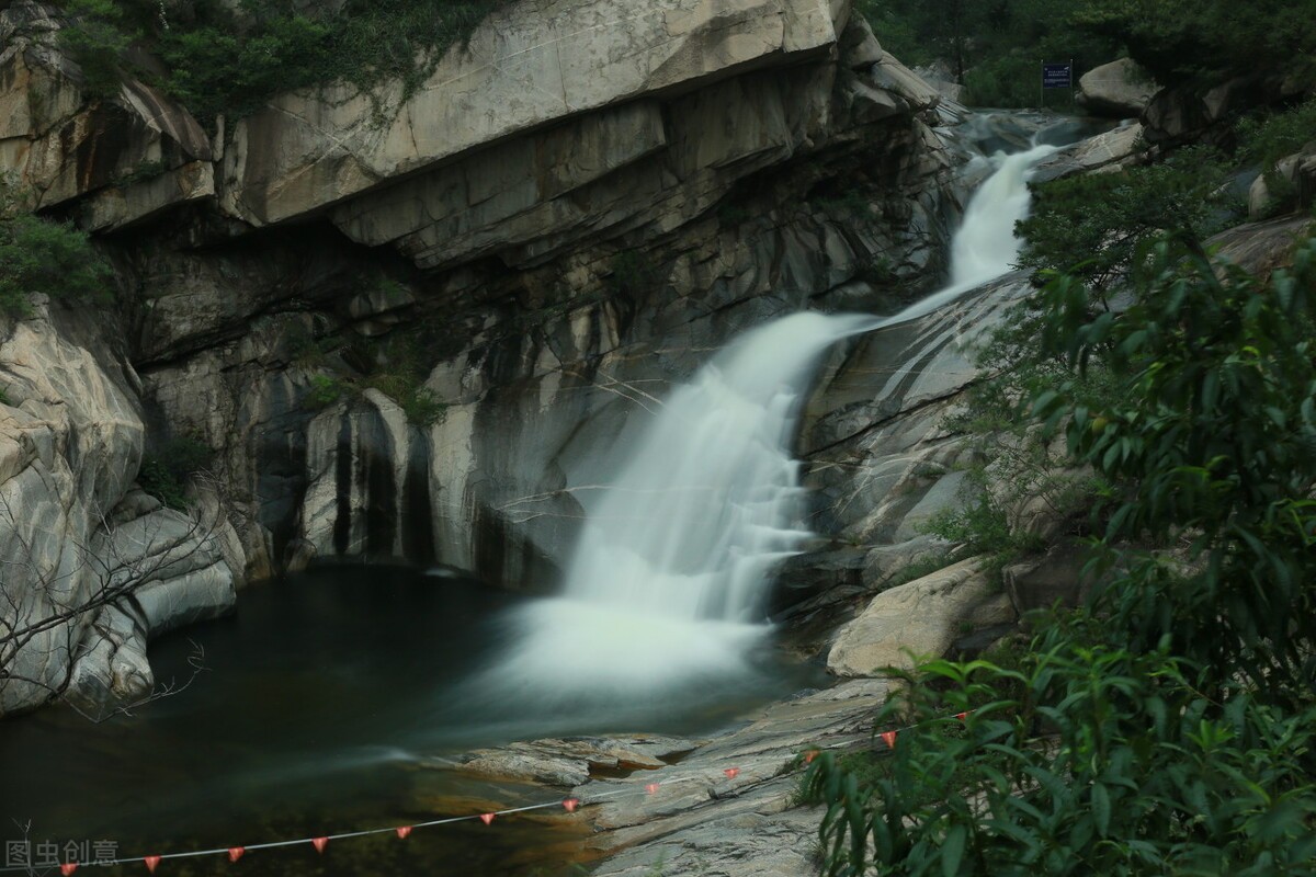 “龙潭飞瀑”是泰山西溪名胜之一,观潭上瀑布溅起的水花无限,引人也生出无限遐思。