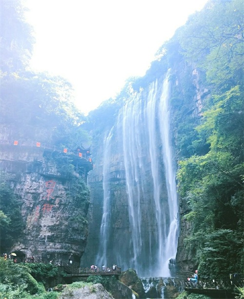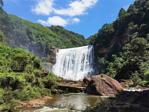 站在瀑布下面,可以亲身感受到大自然的力量,无数飞溅的水花水雾,带来瞬间的清凉体验。
