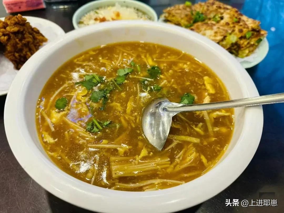 三狠汤是河南开封的传统名菜,这道菜历史悠久,以其独特的口味和制作工艺而闻名。三狠汤的特点是酸、辣、咸三味突出又柔和,用量比其他菜肴偏大,因此被称为“三狠汤”。在饭前喝上一小碗,酸辣开胃。