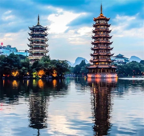 日月双塔文化公园位于桂林市中心,是集自然景观、历史文化、佛教文化于一体的综合性公园。日塔和月塔分别代表太阳和月亮,塔内供奉佛像和文物。公园内还有美丽的湖泊、亭台楼阁和雕塑等景观。这里是桂林市民和游客休闲散步、体验当地文化的好地方。