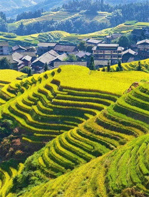 龙脊梯田被誉为“世界梯田之冠”,其独特的景观和农耕文化吸引了无数游客。层层叠叠的梯田在阳光下熠熠生辉,与周围的绿色植被和远处的山峦相映成趣。在这里,你可以体验传统的农耕文化,品尝当地的农家菜肴,感受人与自然和谐共生的美好。